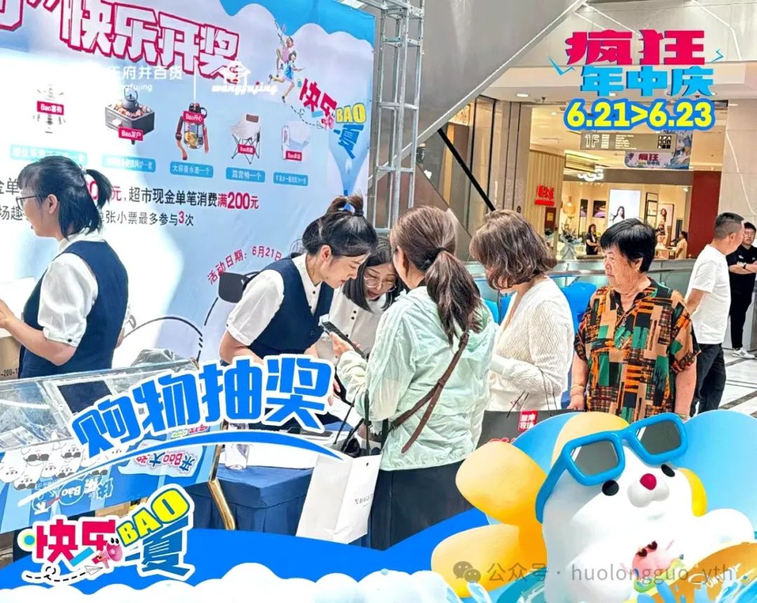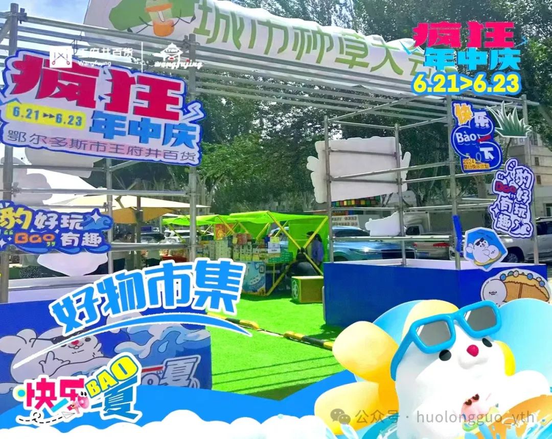 6月21日至23日,,,,,,鄂尔多斯店举行一年一度的“年中庆”。。。。。。。门店联名“福豹”IP,,,,,,以“猖獗年中庆 快乐Bao一夏”为主题,,,,,,携手全店品牌,,,,,,通过主题视觉打造、意见意义潮玩、满额抽奖、满额赠礼、场景打卡、现场演艺、墟市联动、会员增值、直播互动、快乐体验等多种方法,,,,,,打造一场年中快乐省钱潮玩盛宴。。。。。。。