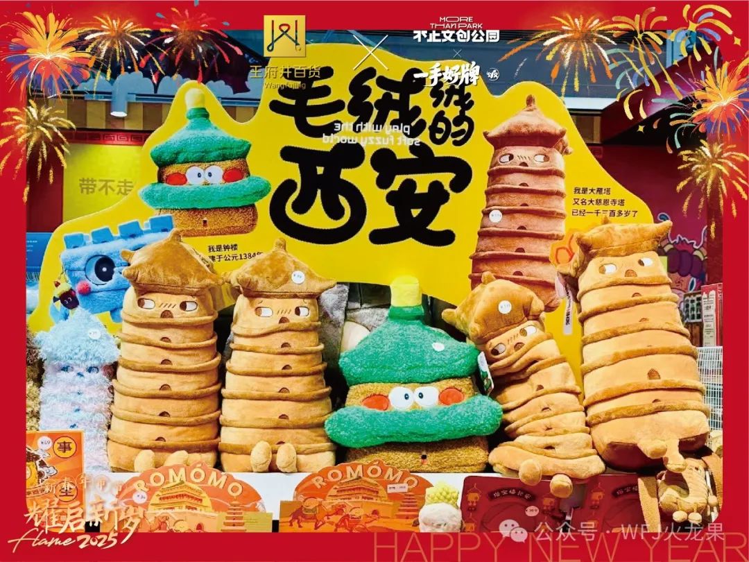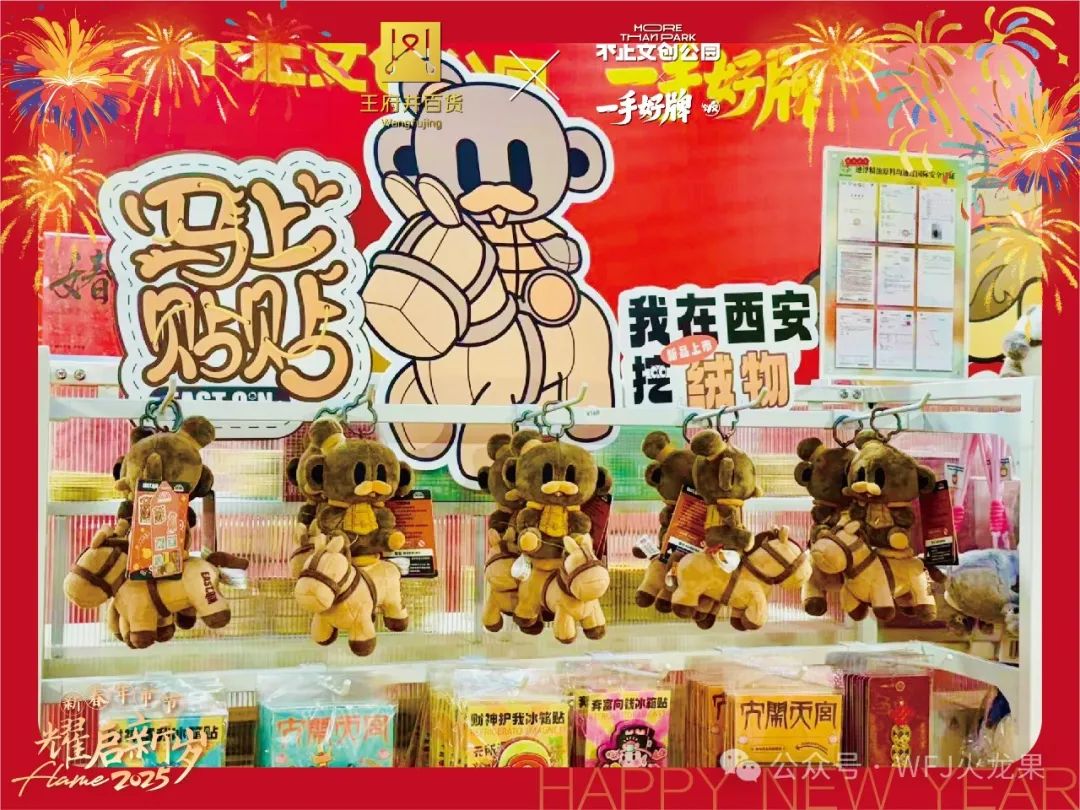 快闪店的落地恰逢春节假期,,,,,,,,肉夹馍、三秦套餐、城墙、钟楼、大雁塔、唐妞、秦俑等带有西安地区性特色的海量文创限时开售;;;;;;;;尚有深受游客们喜欢的“毛绒绒西安”荟萃亮相,,,,,,,,让游客爱不释手;;;;;;;;以陕西历史博物馆、秦始皇戎马俑博物馆、西安博物院、宝鸡青铜器博物馆、华清池、秦岭四宝科学院等具有人文历史秘闻的冰箱贴也广受好评;;;;;;;;定制版蛇年红包、新年虎头帽、养生锤等新年气氛好物也吸引着外地主顾。。。。。。